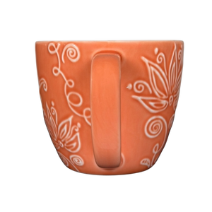Bring a touch of fresh charm to your morning routine with this beautifully crafted coral Floral Embossed Ceramic Mug. Its soft pastel coral glaze creates a soothing backdrop for the delicate white floral and leave designs that wrap gracefully around the surface. The embossed pattern adds a tactile dimension, offering both comfort and artistry in every sip.