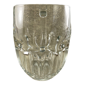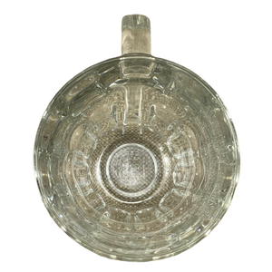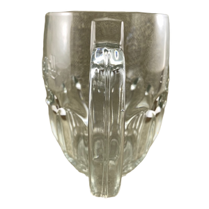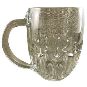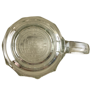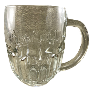 This is a heavy glass mug that features the Pilsner Urquell logo embossed on its front upper surface.