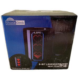 The 8-Bit Legendary Hero Heat-Change Mug lets you know you'll press A to attack and B to defend. You also have one key and one potion, just in case. And three hearts. But the hearts are low... until you add some hot beverage! Then the hearts will fill up with life, as will you once you drink your caffeine-rich brew. The 8-Bit Legendary Hero Heat-Change Mug is a great link (get it?) to video games of yore.