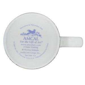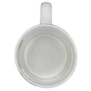 The artwork on the exterior surface does not completely reach the bottom in a few spots. This results in a tiny bit of white visible on the lowest edge of the mug.
