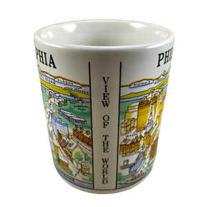 Also has "VIEW OF THE WORLD" printed vertically on the side opposite the handle.