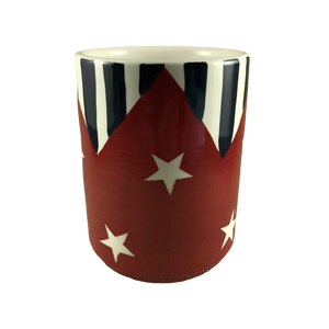 Features an abstract version of the American flag with stars and stripes arranged in a unique pattern. Please see the photos as it is difficult to describe.