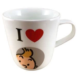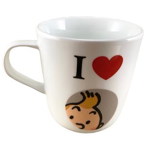 Features the same artwork on its front and rear surface consisting of an image of Tintin with "I" and a red heart printed above him.