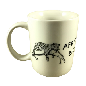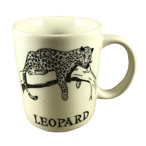 Features black and white artwork of a leopard resting on a tree branch on the front surface.