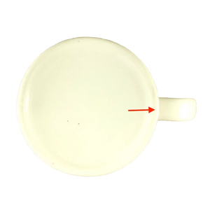 Condition note: there's a tiny chip on the bottom rim. Slthough it's not visible in the photo, please see the last photo for a red arrow pointing to the location of this.