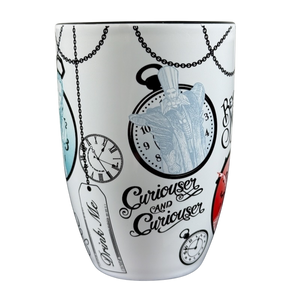 Features artwork depicting characters in pocket watches and phrases from the 2016 live action movie "Alice Through The Looking Glass."