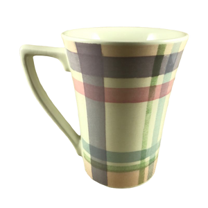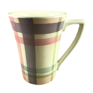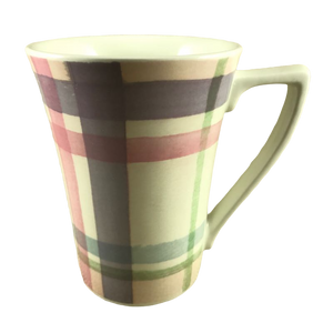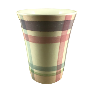 Features a plaid pattern in pastel colors covering the exterior surface.