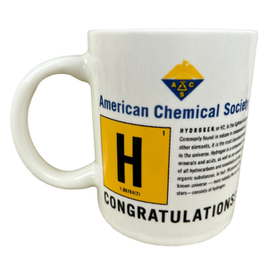 The rear surface has "American Chemical Society" printed on its upper surface with a large "H" below it in a yellow box. To the right of this is a paragraph describing Hydrogen.