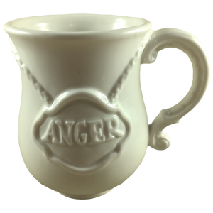 Features an embossed necklace on its front surface with "ANGER" embossed within it.