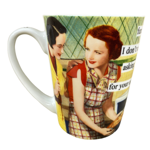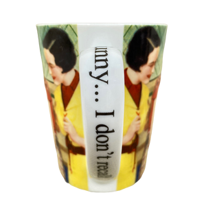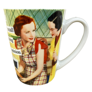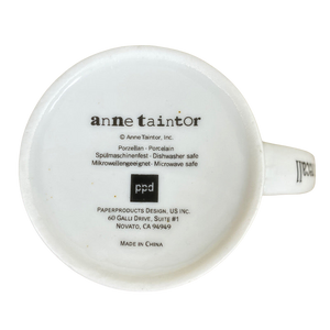 Between the front and rear artwork on the left side of the mug printed vertically is "anne taintor."