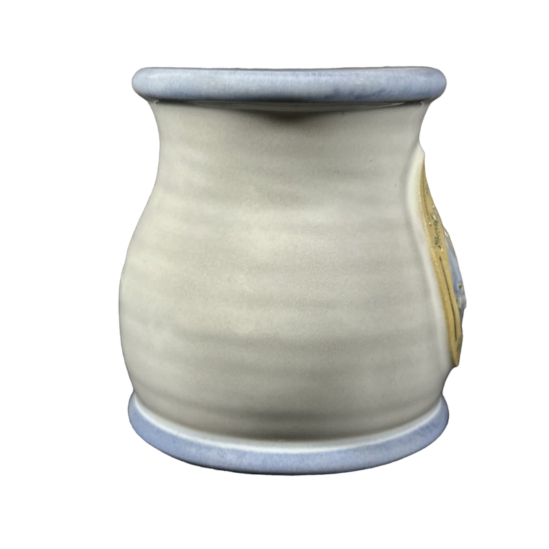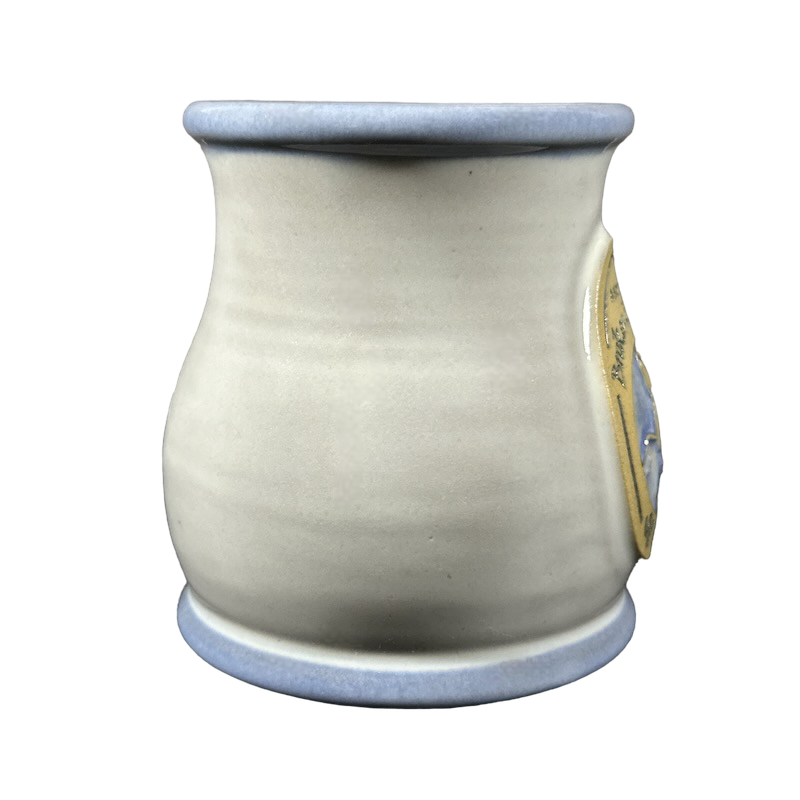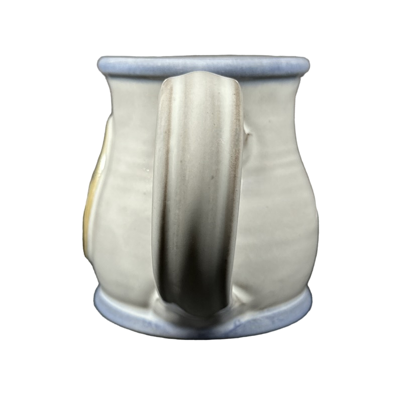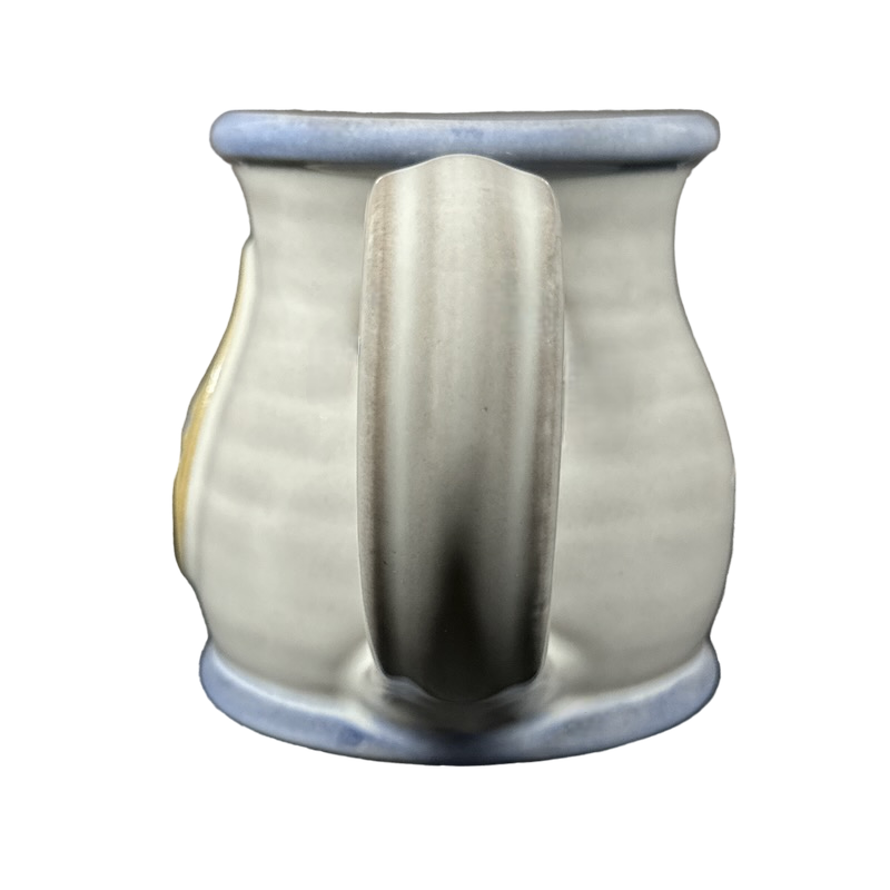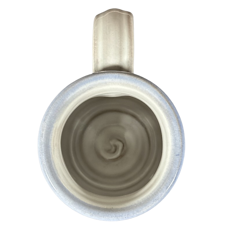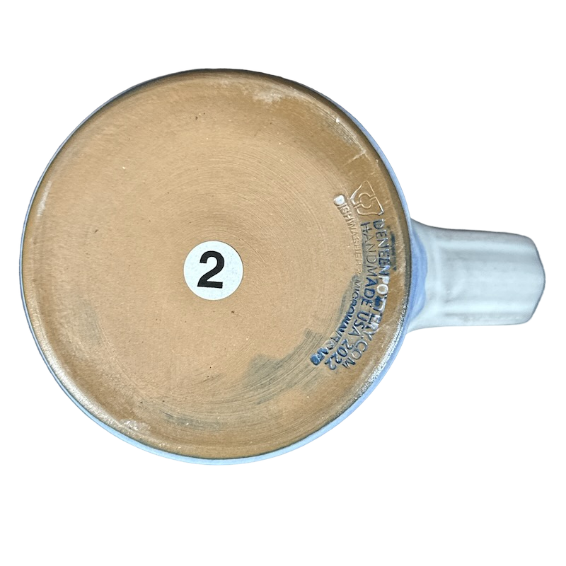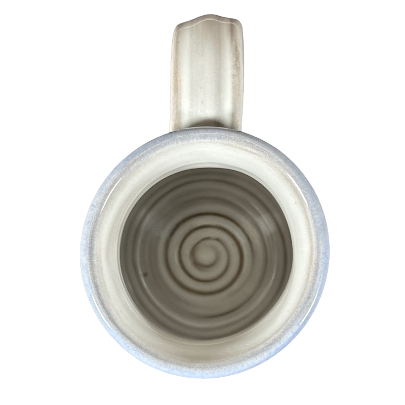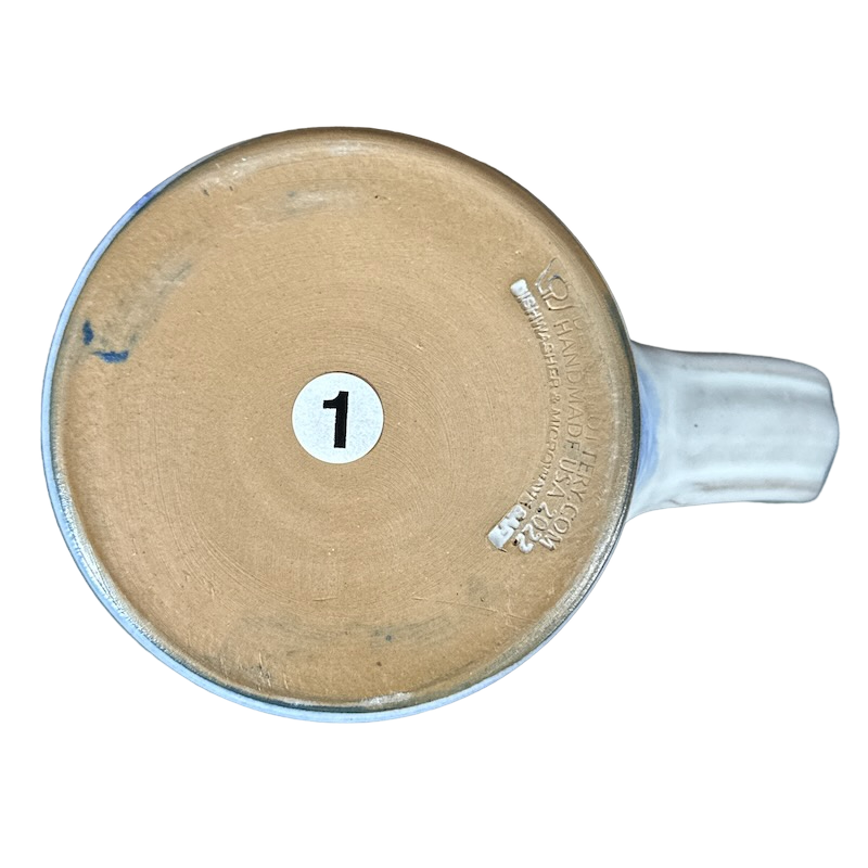 Copy 1: This mug is pre-owned and reconditioned. This mug has no chips, cracks, scratches, stains or crazing. There is a blue dot on the interior bottom surface, please see the 5th photo.