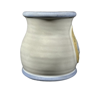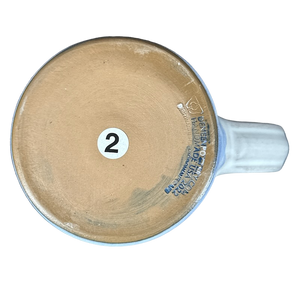 Copy 1: This mug is pre-owned and reconditioned. This mug has no chips, cracks, scratches, stains or crazing. There is a blue dot on the interior bottom surface, please see the 5th photo.