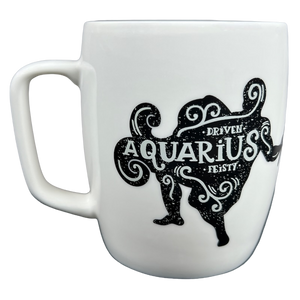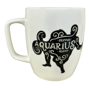 Features the same artwork on its front and rear surface consisting of artwork relating to the zodiac sign Aquarius.