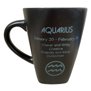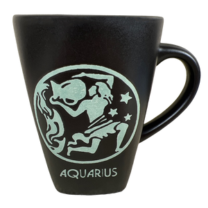 It features artwork related to the zodiac sign Aquarius etched into its front surface with "Aquarius" etched below it.