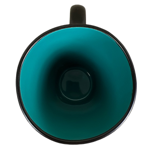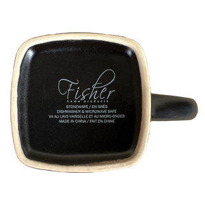 This mug has a round mouth and a square base.