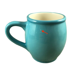Copy 1: This mug has no chips, cracks, scratches, stains or crazing. There is a white dot present on the rear upper left surface. Please see the 3rd photo where a red arrow is pointing to this