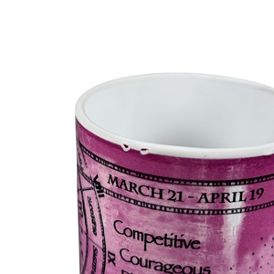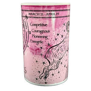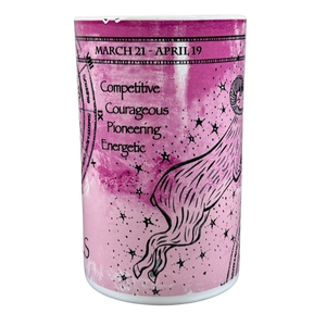 Features interesting artwork relating to the zodiac sign Aries wrapping around its exterior surface.