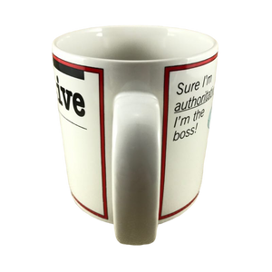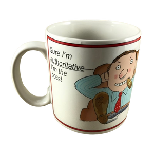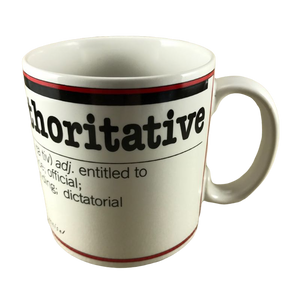 Features the definition of authoritative on the front exterior surface and a man smoking a cigar on the rear surface with "Sure I'm authoritative-I'm the boss!" printed to his left.