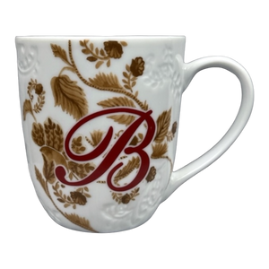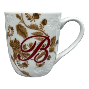 This beautiful mug features the letter "B" printed in brown in a cursive font on its front surface.