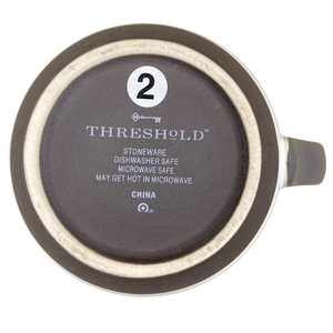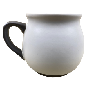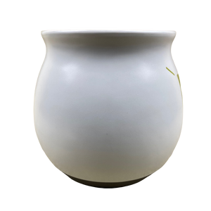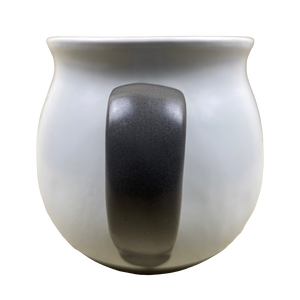There is a band of gray trim wrapping around the base on the exterior, the handle is finished in a matching gray color.