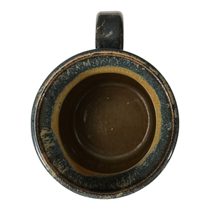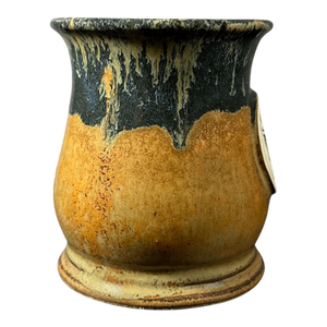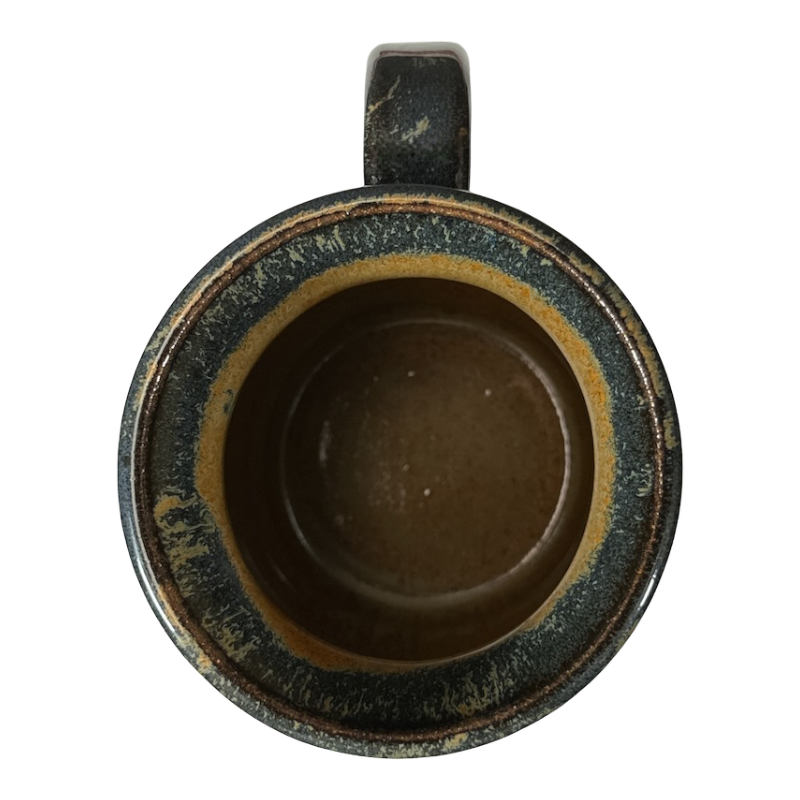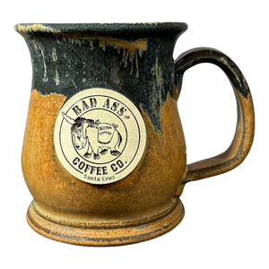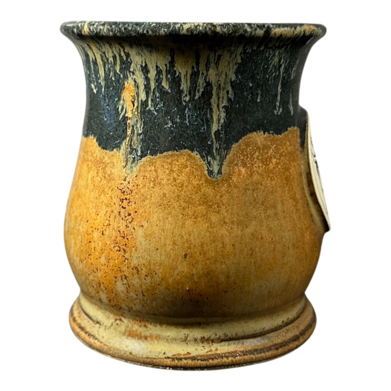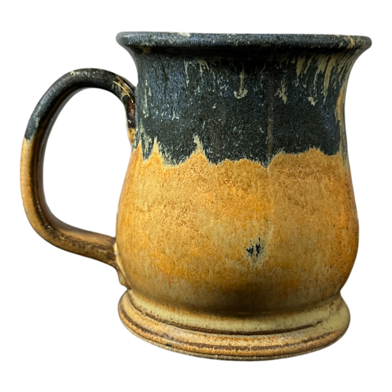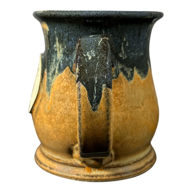 This is a larger pottery style mug with a beautiful finish on its interior and exterior. The photos make the color of the mug look sligtly lighter than it appears when viewed in person.