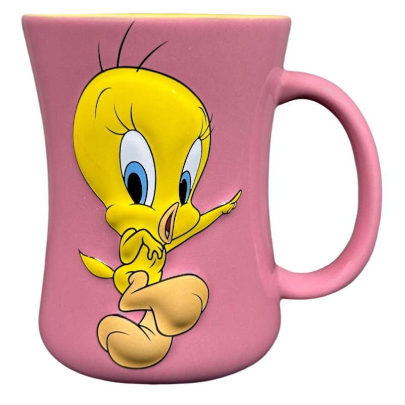 This mug features a 3D embossed image of Tweety Bird on its front surface.