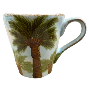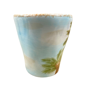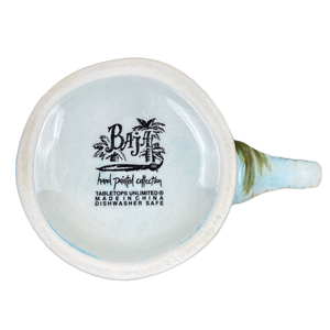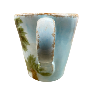 This is a larger mug with beautiful hand painted pineapples and crowns on its front and rear surface.