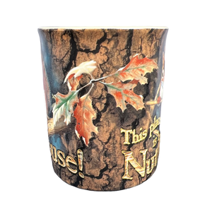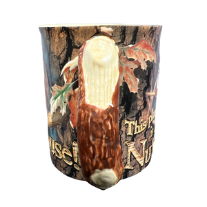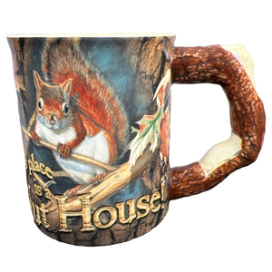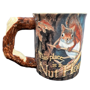 Features the same artwork on its front and rear surface consisting of a squirrel holding on to a branch in a tree.