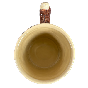 The interior color exhibits variation with a few different shades of tan. It has the appearance where there is one shade of paint overlapping and flowing over another shade. Towards the bottom surface this has a drip glazed appearance. This is not imaged very well in the photos so please keep this in mind. In my opinion it looks nice and may be intentional by the manufacturer.