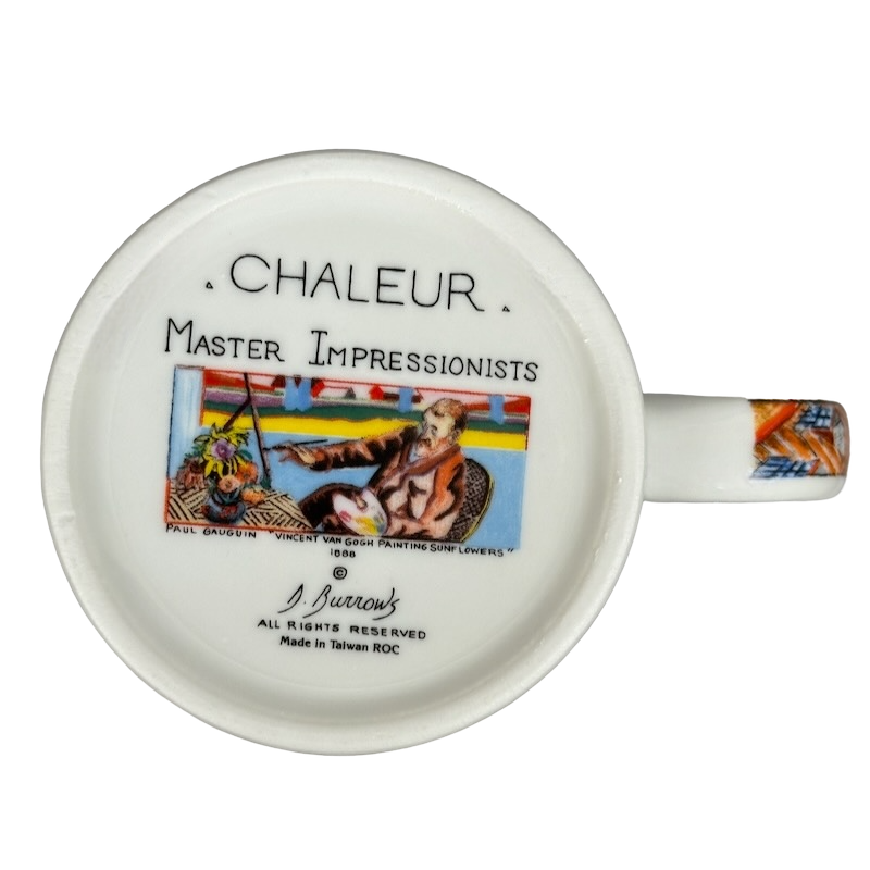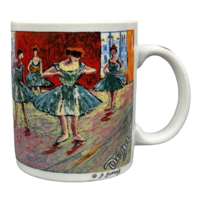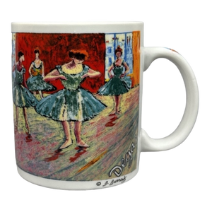 "Degas" is signed diagonally in the front right lower corner of the painting on the front surface of the mug.