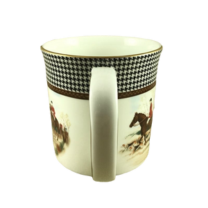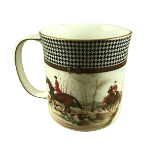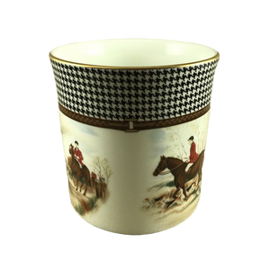Features gorgeous artwork of men on horseback engaged in a hunt with dogs.