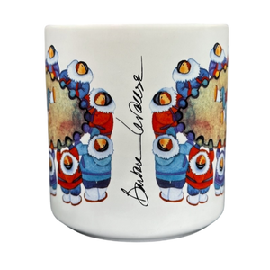 This extremely rare mug features the same artwork on its front and rear surface depicting Inuit children playing.
