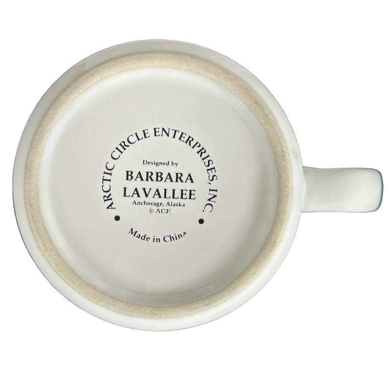 Designed by Barbara Lavallee in Anchorage, Alaska and signed by her on the left exterior surface.