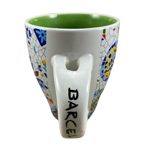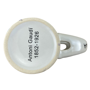 Features colorful stained glass artwork by Antoni Gaudi wrapping around its exterior surface.