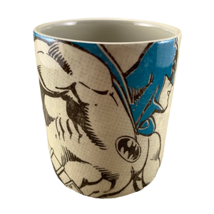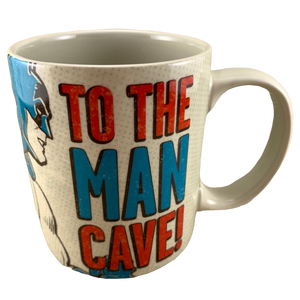 Artwork wrapping around the exterior surface depicts an image of Batman with "TO THE MAN CAVE!" printed in a large red and blue font to his right.