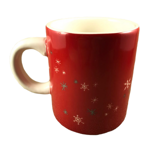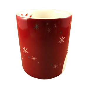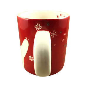 Also features snowflakes wrapping around the exterior surface and footprints on the inside of the mug on the rear upper surface.