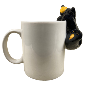 Features a 3D bear hanging from the rim on the left side of this mug.