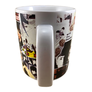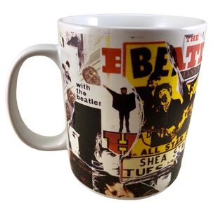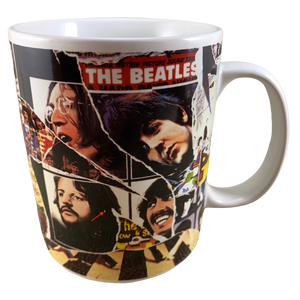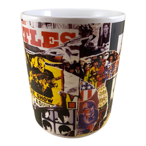 Features artwork wrapping around its exterior surface consisting of a collage made up of what looks like Beatles posters and album covers.