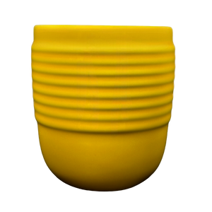 Features a ribbed surface wrapping around most of its exterior.