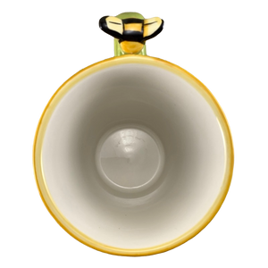 On the top of the handle is a 3D figural bee pointed to match the ones on the front surface. The handle is finished in a coordinating green shade.