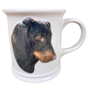 Features artwork on the front of the mug depicting a Dachshund embossed onto the exterior surface.