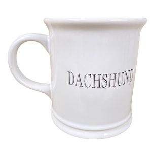 On the back of the mug "DACHSHUND" is printed horizontally.