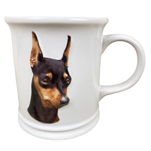 Features artwork on the front of the mug depicting a Miniature Pinscher embossed onto the exterior surface.