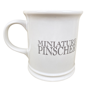 On the back of the mug "MINIATURE PINSCHER" is printed horizontally.