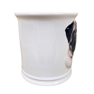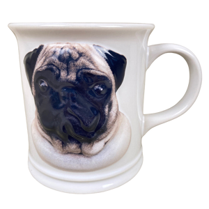 Features artwork on the front of the mug depicting a Pug embossed onto the exterior surface.