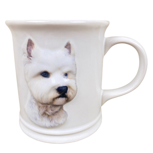 Features artwork on the front of the mug depicting a Westie embossed onto the exterior surface.