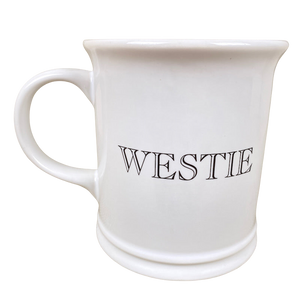 On the back of the mug "WESTIE" is printed horizontally.