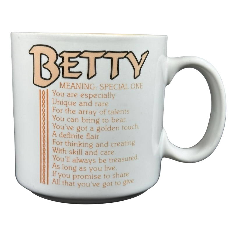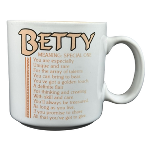 Features the name BETTY printed in a large font at the top of the front side of the mug.