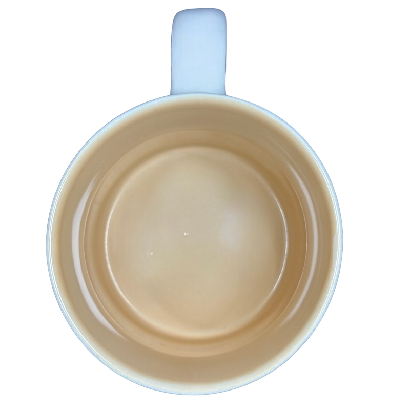 There is a small pinhole from the manufacturing process on the exterior surface opposite the handle just under the rim. Please see the first and fourth photos.
