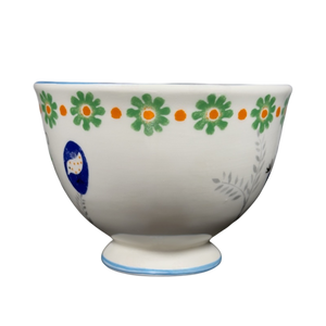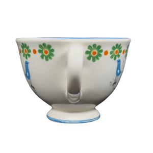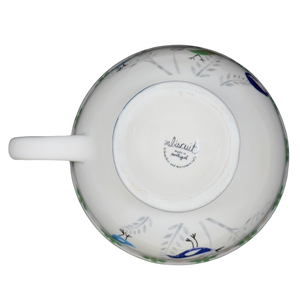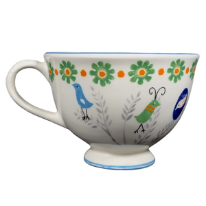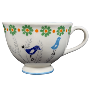 This ultra rare mug features artwork on its exterior surface depicting birds and flowers.
